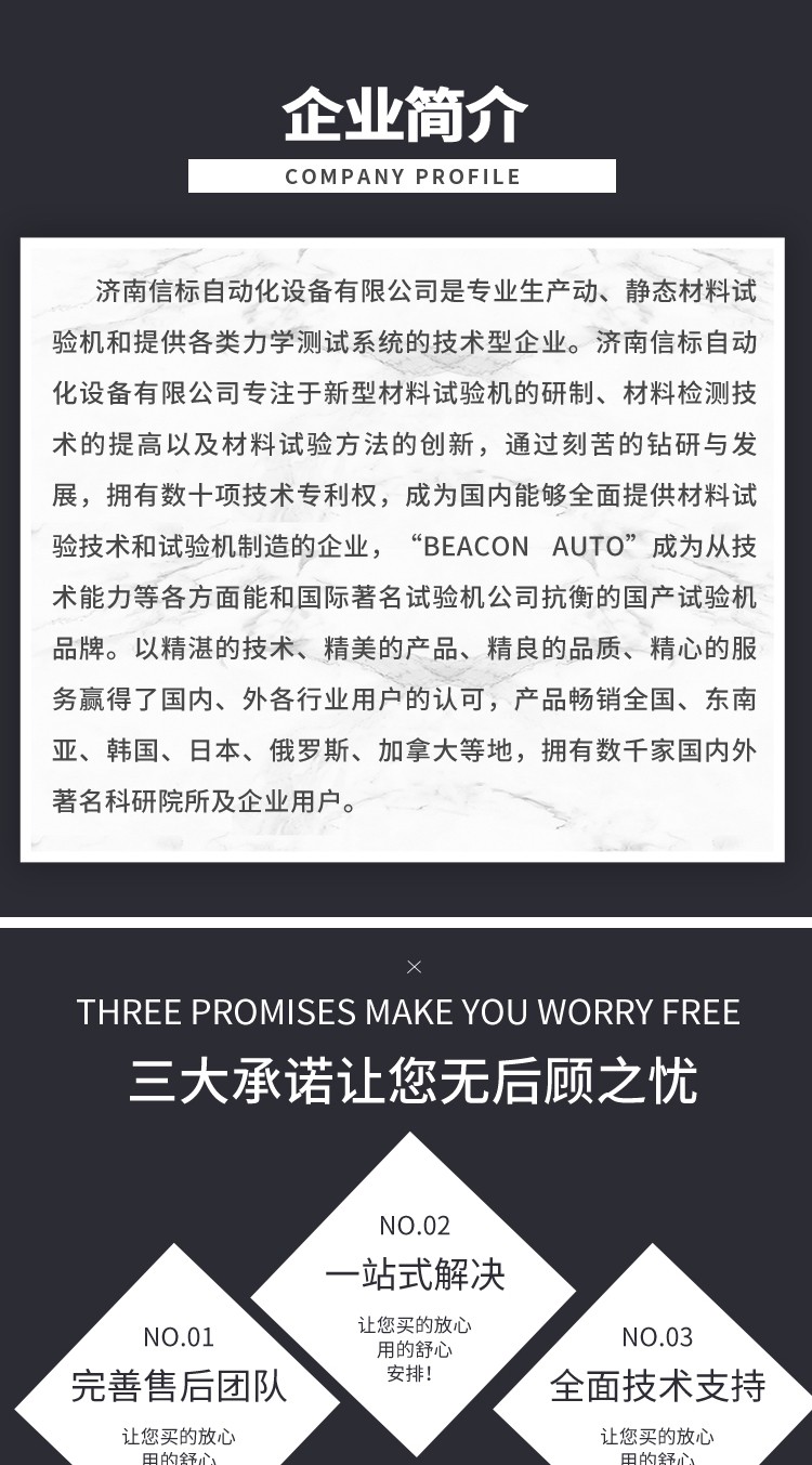 濟(jì)南信標(biāo)自動(dòng)化設(shè)備有限公司主要生產(chǎn):動(dòng)靜態(tài)萬能疲勞試驗(yàn)機(jī),接骨板彎曲試驗(yàn)機(jī),縫合線拉伸疲勞試驗(yàn)機(jī),髖膝關(guān)節(jié)磨損試驗(yàn)機(jī),電子萬能試驗(yàn)機(jī)、液壓萬能試驗(yàn)機(jī)、巖石三軸、四軸,電液拉力試驗(yàn)機(jī),材料試驗(yàn)機(jī),高低溫蠕變,高低頻疲勞,拉伸、扭轉(zhuǎn)、杯突等二十多個(gè)系列兩千多個(gè)的品種。