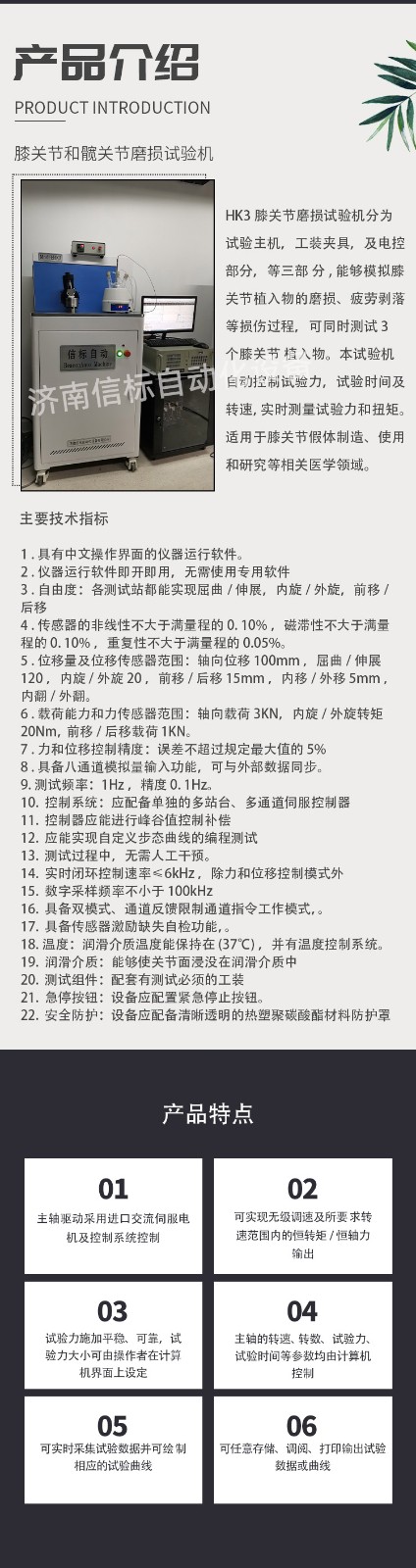濟(jì)南信標(biāo)自動(dòng)化設(shè)備有限公司主要生產(chǎn):動(dòng)靜態(tài)萬能疲勞試驗(yàn)機(jī),接骨板彎曲試驗(yàn)機(jī),縫合線拉伸疲勞試驗(yàn)機(jī),髖膝關(guān)節(jié)磨損試驗(yàn)機(jī),電子萬能試驗(yàn)機(jī)、液壓萬能試驗(yàn)機(jī)、巖石三軸、四軸,電液拉力試驗(yàn)機(jī),材料試驗(yàn)機(jī),高低溫蠕變,高低頻疲勞,拉伸、扭轉(zhuǎn)、杯突等二十多個(gè)系列兩千多個(gè)的品種。