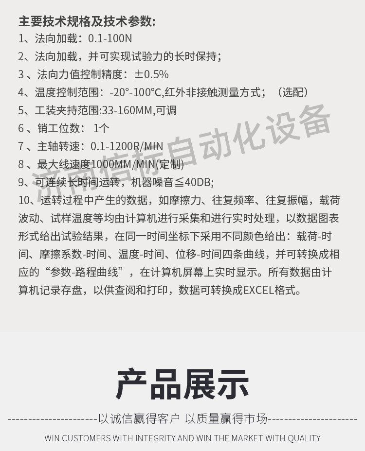 濟(jì)南信標(biāo)自動化設(shè)備有限公司主要生產(chǎn):動靜態(tài)萬能疲勞試驗機(jī),接骨板彎曲試驗機(jī),縫合線拉伸疲勞試驗機(jī),髖膝關(guān)節(jié)磨損試驗機(jī),電子萬能試驗機(jī)、液壓萬能試驗機(jī)、巖石三軸、四軸,電液拉力試驗機(jī),材料試驗機(jī),高低溫蠕變,高低頻疲勞,拉伸、扭轉(zhuǎn)、杯突等二十多個系列兩千多個的品種。