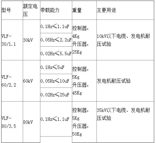 VLF-80/3.5超低頻高壓發(fā)生器參數表