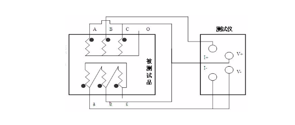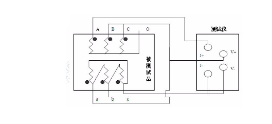 關(guān)于大容量的變壓器的低壓側(cè)丈量時,如果在既有的情況下,直流電阻測驗儀的最大電流比較小,或許為了加速丈量速度,可挑選助磁法丈量。圖三、圖四分別為丈量低壓Rac、Rba、Rcb的接線辦法。