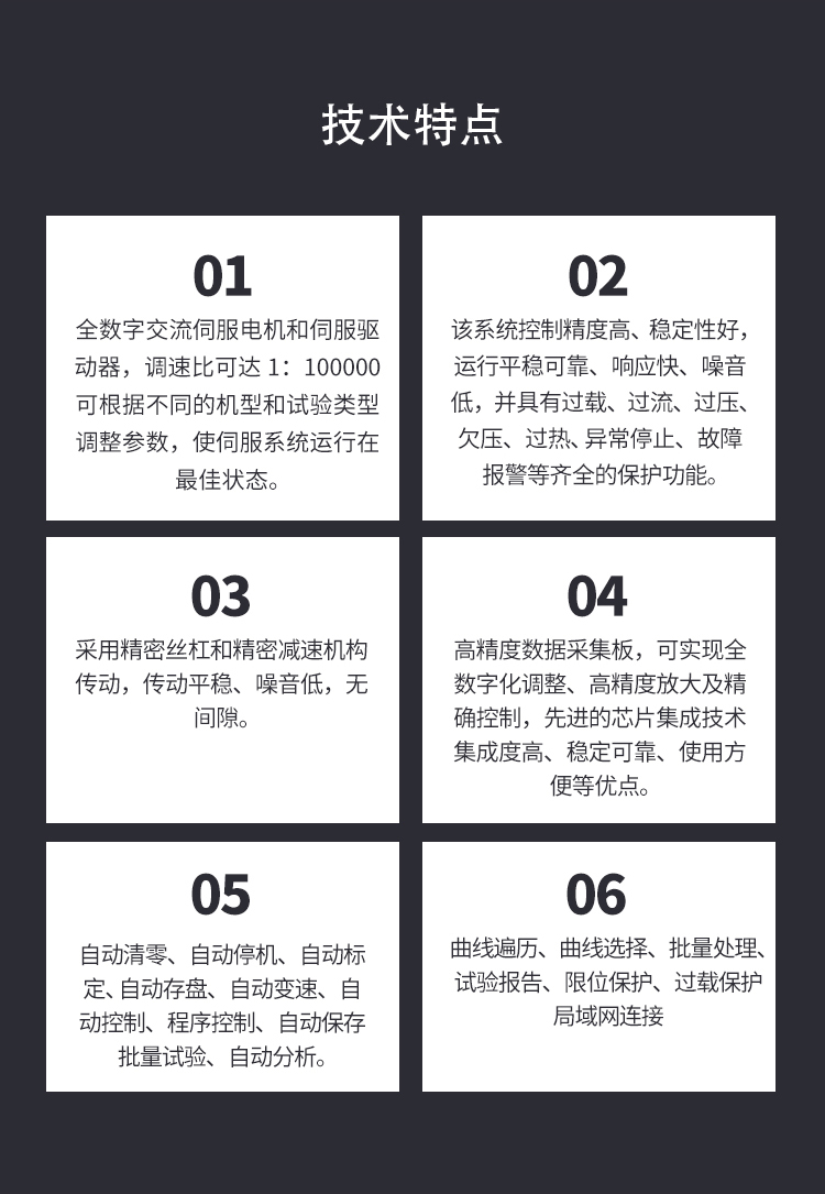 測(cè)量參數(shù): 1. 最大試驗(yàn)力: 10/20/30/50kN 2. 試驗(yàn)力測(cè)量范圍: 0.4%--100%。 3. 試驗(yàn)力示值精度:優(yōu)于示值±1% 4. 試驗(yàn)力分辨力:1/500000 5. 橫梁位移測(cè)量精度:分辨率高于0.0025mm 6. 變形測(cè)量精度: ±0.5% 7. 試驗(yàn)速度范圍:0.0002—500mm/min,無(wú)級(jí)調(diào)速 8. 速度控制精度:±1%(0.0002~50mm/min); ±0.5%(50~3500mm/min) 9. 恒力、恒變形、恒位移控制范圍: 0.2%-100%FS 10.恒力、恒變形、恒位移控制精度: 設(shè)定值<10%FS時(shí),設(shè)定值的±1.0%以內(nèi) 設(shè)定值≥10%FS時(shí),設(shè)定值的±0.1%以內(nèi) 11. 變形速率控制精度: 速率<0.05%FS時(shí)為±2.0%設(shè)定值內(nèi) 速率≥0.05%FS時(shí)為±0.5%設(shè)定值內(nèi) 12. 試驗(yàn)空間: A.拉伸空間:1000mm B.壓縮空間:1100mm C.寬度:450mm 13.下工作臺(tái):450*250 14. 壓盤尺寸:φ100 mm 15. 整機(jī)電源:單相,220V±10%,50Hz,功率:750 W 16. 工作環(huán)境:室溫—35℃,相對(duì)濕度不超過(guò)80% 17. 主機(jī)尺寸: 870×730×1750mm 18. 重量:400 kg 三、產(chǎn)品配置: 1、主機(jī) 一套 2、松下A7全數(shù)字伺服電機(jī)及伺服驅(qū)動(dòng)器; 一套 3、高精度負(fù)荷傳感器; 5kn/1kn/500N/200/ 各一支 4、Hiwin精密滾珠絲杠; 2支 5、光電編碼器(2500線,內(nèi)置); 1支 6、夾具:滿足海綿/汽車座椅所需工裝 1套(有多種) 7、三閉環(huán)測(cè)量系統(tǒng)一套,采用力,位移,應(yīng)變等多種控制方式,試驗(yàn)過(guò)程中可實(shí)時(shí)顯示力-位移,力-時(shí)間,應(yīng)力-應(yīng)變等多種試驗(yàn)曲線,并可自動(dòng)得出最大負(fù)荷,拉伸強(qiáng)度,斷裂伸長(zhǎng)率等多種結(jié)果參數(shù)。 8、HP品牌計(jì)算機(jī),21寸液晶顯示器; 9、打印機(jī):HPA4彩色噴墨打印機(jī); 10、專用試驗(yàn)軟件:可執(zhí)行GB,ISO,JIS、DIN,ASTM等多種試驗(yàn)標(biāo)準(zhǔn),全開放式,功能強(qiáng)大,方便操作,免費(fèi)提供升級(jí)軟件,并可根據(jù)用戶需求自行編輯試驗(yàn)軟件。