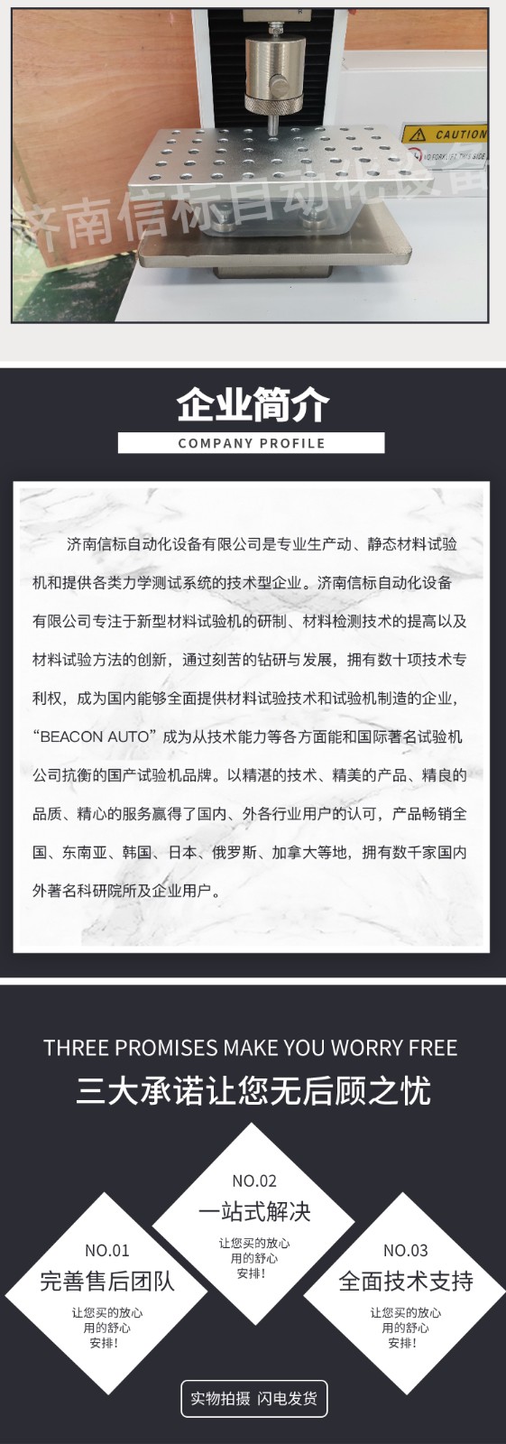 飯盒壓縮抗壓試驗機 單臂壓力萬能試驗機主要技術(shù)指標: 1、 最大試驗力: 100N/200N/500N/1KN/2KN/5KN 2、 測 量 范 圍: 最大試驗力的2%—100% 3、 試驗機精度級別:1級 4、 試驗力準確度: 優(yōu)于示值的±1% 5、 橫梁位移測量: 分辨率為0.01mm 6、 變形準確度: 優(yōu)于±1% 7、 調(diào) 速 范 圍: 0.05-500mm/min 8、 試 驗 空 間: 950mm 9、 主 機 形 式: 單臂式結(jié)構(gòu) 10、 主 機 尺 寸: 約600×420×1150 11、 重 量: 約90Kg 12、 工 作 環(huán) 境: 室溫~45℃,濕度20%~80% 飯盒壓縮抗壓試驗機 單臂壓力萬能試驗機主要功能及特點: 主機: 1.1調(diào)速系統(tǒng)采用伺服電機和自主研發(fā)減速系統(tǒng),性能穩(wěn)定可靠,具有過流、過壓、過載等保護裝置。調(diào)速范圍可達0.05~500mm/min。 1.2傳動部分采用圓弧同步齒形帶,精密絲杠副傳動,傳動平穩(wěn),噪音低,傳動效率高。 1.3萬向節(jié)采用十字插銷結(jié)構(gòu),而且具有擺角限制功能,一方面便于試樣夾持,保證試驗同心度,另一方面很好的消除了不規(guī)則試樣對傳感器的影響。 2、控制系統(tǒng)、操作軟件及數(shù)據(jù)處理系統(tǒng) 2.1計算機控制系統(tǒng),具有集成度高、性能穩(wěn)定、調(diào)整方便等優(yōu)點??梢詫嶒灁?shù)據(jù)進行實時采集,對實驗特性曲線實現(xiàn)實時動態(tài)顯示,試驗數(shù)據(jù)文件能以Access常用數(shù)據(jù)庫或SQLserve大型數(shù)據(jù)庫的方式保存,方便實現(xiàn)客戶的資源共享及網(wǎng)絡管理,以及用戶的再分析。對于用戶自定義的各種word2000報表,該軟件可輕松實現(xiàn)訪問,解決了不同用戶或同一用戶在不同時期對試驗報表有不同需要的難題。該軟件可處理試驗力、位移、 時間、變形的原始數(shù)據(jù)及由此派生的曲線。