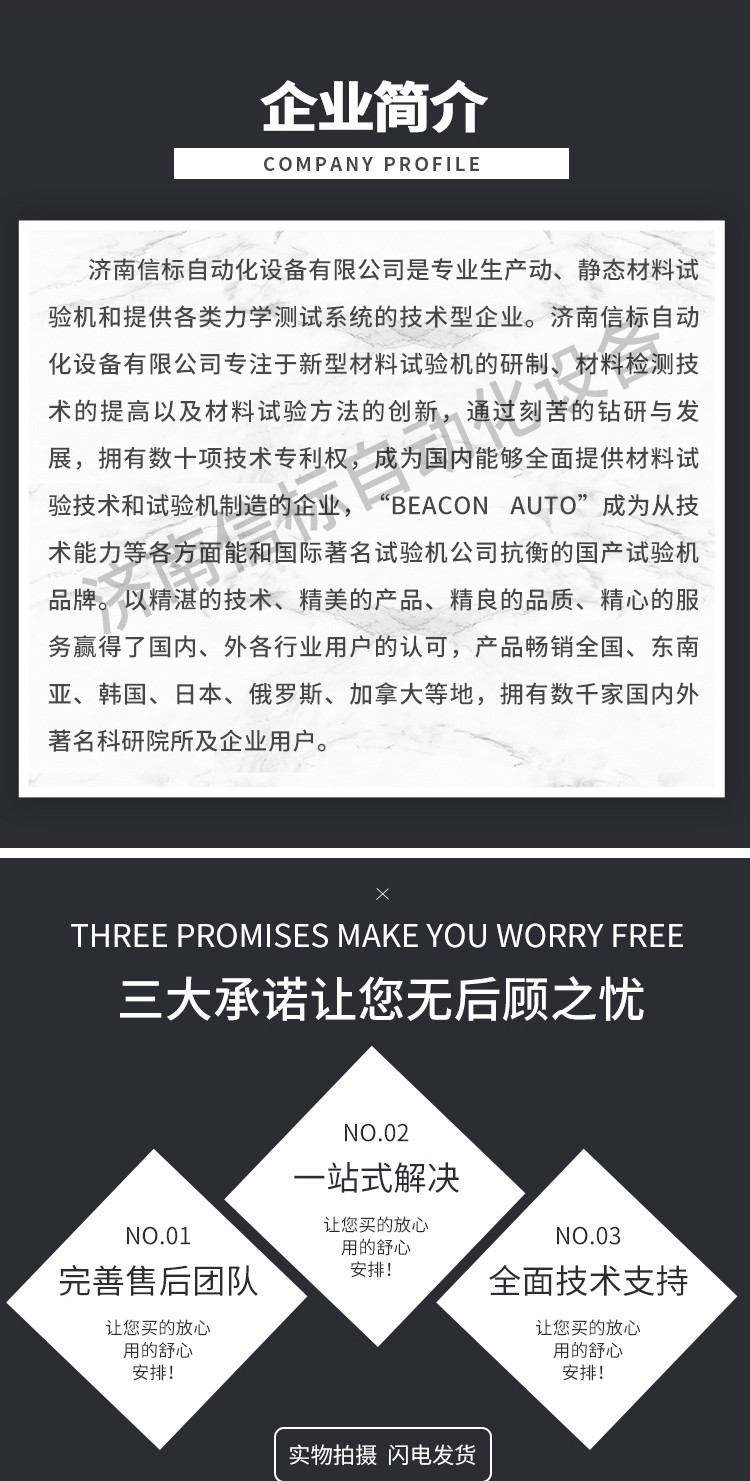 濟南信標自動化設備有限公司主要生產:動靜態(tài)萬能疲勞試驗機,接骨板彎曲試驗機,縫合線拉伸疲勞試驗機,髖膝關節(jié)磨損試驗機,電子萬能試驗機、液壓萬能試驗機、巖石三軸、四軸,電液拉力試驗機,材料試驗機,高低溫蠕變,高低頻疲勞,拉伸、扭轉、杯突等二十多個系列兩千多個的品種。