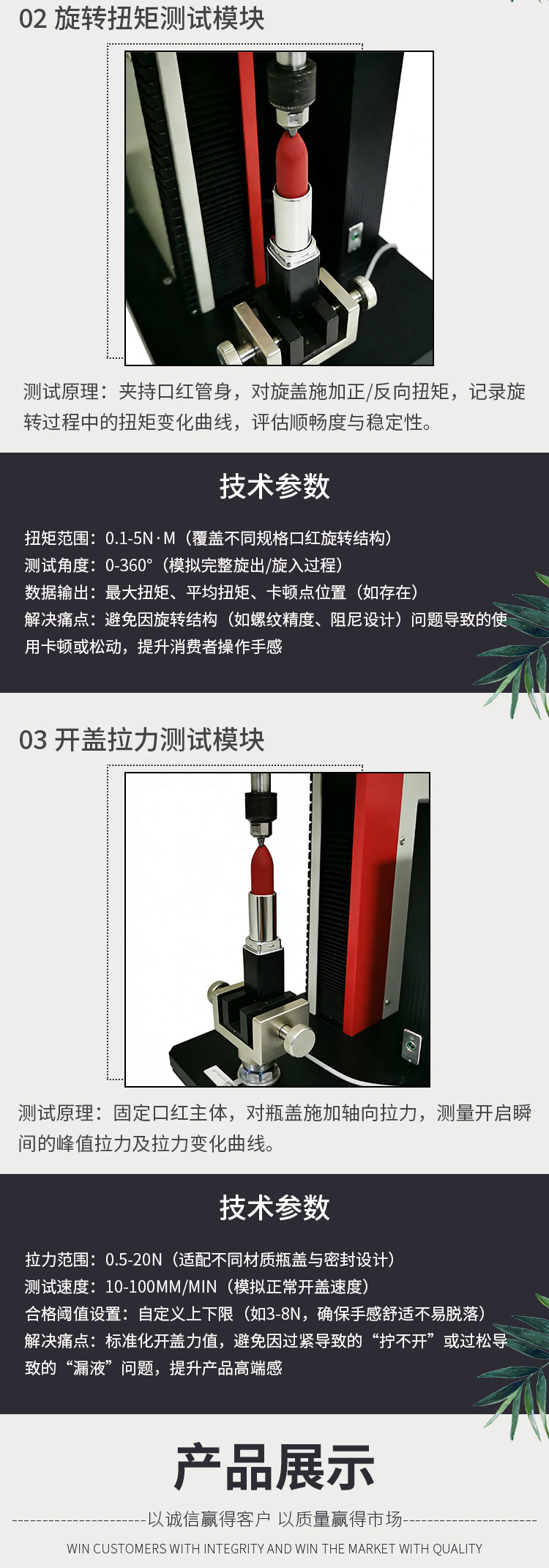 口紅綜合性能試驗機 膏體抗斷測試 旋轉(zhuǎn)扭矩測試 開蓋拉力測試