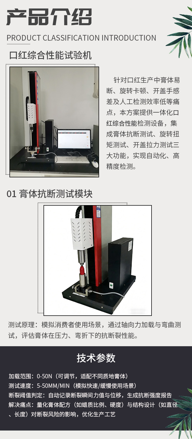 當(dāng)前位置:首頁 > 解決方案 > 口紅綜合性能試驗機 膏體抗斷測試 旋轉(zhuǎn)扭矩測試 開蓋拉力測試