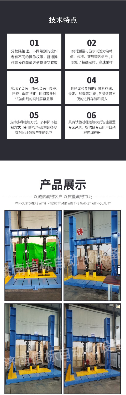 主要技術(shù)指標(biāo): 1. 最大試驗(yàn)力: 20kN 3. 試驗(yàn)力測(cè)量范圍: 0.2%--100%。 4. 試驗(yàn)力示值精度:優(yōu)于示值±0.5% 5. 試驗(yàn)力分辨力:1/500000(全程不分檔或等效6檔) 5. 橫梁位移測(cè)量精度:分辨率高于0.001mm 6. 角度測(cè)量精度: 0.02度 7. 試驗(yàn)速度范圍:0.001—500mm/min,無(wú)級(jí)調(diào)速 8. 速度控制精度:±1%(0.01~10mm/min); 9. 恒力、恒變形、恒位移控制范圍: 0.2%-100%FS 10.恒力、恒變形、恒位移控制精度: 設(shè)定值<10%FS時(shí),設(shè)定值的±1.0%以內(nèi) 設(shè)定值≥10%FS時(shí),設(shè)定值的±0.1%以內(nèi) 11.最大扭矩:500N·m; 12.試驗(yàn)扭矩示值相對(duì)誤差:1級(jí)(±1%) 13.試驗(yàn)扭矩重復(fù)性相對(duì)示值誤差:≤1% 14.扭矩分辨力:0.01N.m 15.扭轉(zhuǎn)角測(cè)量范圍:無(wú)限制 16.最小讀數(shù)值:0.1° 17.扭轉(zhuǎn)角測(cè)量相對(duì)誤差:±1.0% 18.扭轉(zhuǎn)速度:0.1~360°/min 任意設(shè)定 19.扭轉(zhuǎn)速度相對(duì)誤差:設(shè)定值的±1.0%以內(nèi) 20.扭轉(zhuǎn)方向:正轉(zhuǎn) 反轉(zhuǎn) 21. 試驗(yàn)空間(可定制): A.拉伸空間:900mm B.壓縮空間:1000mm C.寬度:500mm 22. 夾具形式: 按試樣 23. 整機(jī)電源:單相,220V±10%,50Hz,功率:3kW 24. 工作環(huán)境:室溫—35℃,相對(duì)濕度不超過(guò)80% 25 主機(jī)尺寸:960mm×550mm×2050mm 26 重量:580 kg 主機(jī) 1.1主機(jī)采用高鋼度框架結(jié)構(gòu),強(qiáng)度高、變形小; 1.2 采用進(jìn)口高精度滾珠絲杠,傳動(dòng)高效平穩(wěn); 1.3 傳動(dòng)部分采用圓弧齒同步帶傳動(dòng),傳動(dòng)過(guò)程中雙向無(wú)間隙; 1.4 采用交流伺服電機(jī)及驅(qū)動(dòng)系統(tǒng),確保傳動(dòng)平穩(wěn),力矩穩(wěn)定,具有過(guò)流、過(guò)壓、過(guò)載等保護(hù)裝置,調(diào)速比可達(dá)1:100000; 1.5 夾具經(jīng)特殊設(shè)計(jì),夾持牢固,操作方便,無(wú)鉗口滑移現(xiàn)象; 1.6 特殊工藝保證試驗(yàn)機(jī)同軸度,很好的消除了不規(guī)則試樣對(duì)傳感器的影響。 1.7NMRV高精度減速機(jī),零背隙保證正反轉(zhuǎn)沒(méi)有間隙 1.8防耦合反力架,保證壓縮和扭轉(zhuǎn)時(shí)兩路傳感器互不影響。