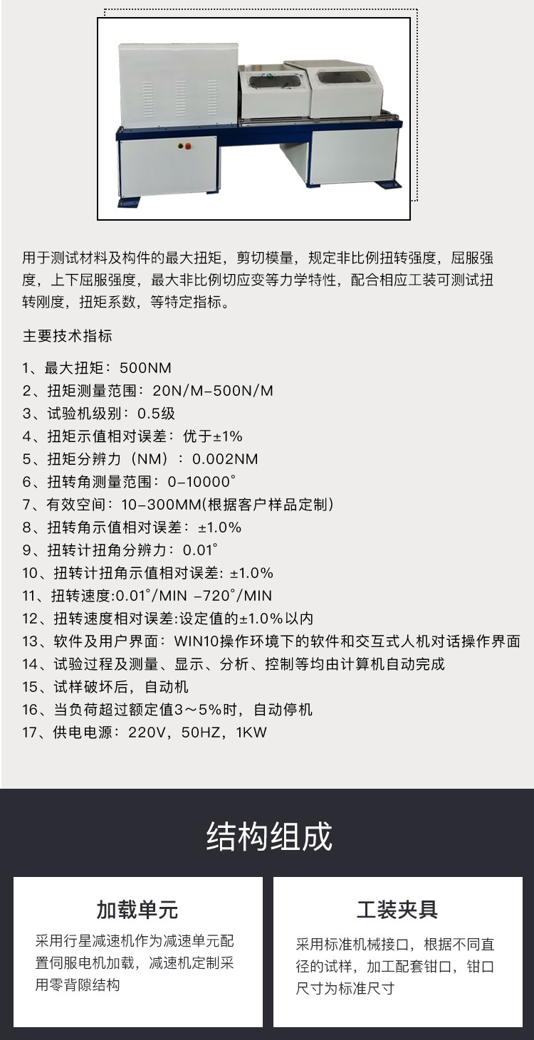 ?基于Win7/10操作平臺,軟件操作簡單、功能強大,人機對話式結(jié)構(gòu)。操作簡單易學(xué) ?軟件采用模塊化設(shè)計,不同的試驗類型創(chuàng)建,試驗控制以及數(shù)據(jù)分析都有獨立的模塊,與主程序分離。可以適應(yīng)多種試驗類型的試驗控制和數(shù)據(jù)處理 ?試驗數(shù)據(jù)可由用戶自行添加,個數(shù)不限,采用模板方式新建試驗記錄,方便快捷 ?自動完成試驗過程、判斷破型,自動記錄保存試驗數(shù)據(jù)。所有試驗數(shù)據(jù)以國際通用的XML格式保存 ?高效的試驗數(shù)據(jù)管理功能,能按多種方式實現(xiàn)試驗數(shù)據(jù)的快速查詢、加載與刪除 ?試驗結(jié)束系統(tǒng)自動分析、統(tǒng)計試驗結(jié)果,分析方式可由用戶自行設(shè)定 ?靈活的報表編輯功能,為用戶提供了面向圖形排版的專用報表編輯工具,簡單易學(xué),能方便的打印試驗曲線及相關(guān)圖片、文字 ?用戶可根據(jù)需要對試驗數(shù)據(jù)進(jìn)行刪除 ?用戶可以根據(jù)需要改變分析方法,數(shù)據(jù)可以根據(jù)本身需要自行修改修約方式 ?專用的數(shù)據(jù)庫管理庫模塊 ?分四檔數(shù)碼顯示試驗力值,精度為每檔量程20%開始示值的±1% ?分四檔數(shù)碼顯示變形,精度為每檔量程20%開始±0.5% ?同時記錄扭矩-時間,扭角-時間、扭矩-扭角、扭矩-轉(zhuǎn)角試驗曲線,可隨時切換觀察,任意放大縮小,水平或垂直移動,實時高速采樣 ?采用人機交互方式分析計算測試材料的機械性能指標(biāo),試驗結(jié)束時系統(tǒng)會自動計算最大扭矩、抗扭強度、上下屈服扭矩、規(guī)定非比例扭矩、切變模量等,在自動分析的基礎(chǔ)上,還可以人工干預(yù)修正分析結(jié)果,提高分析的準(zhǔn)確性